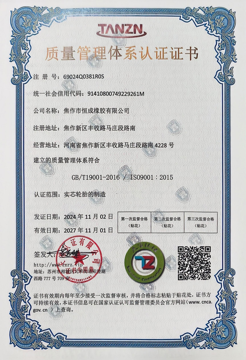质量管理体系认证证书